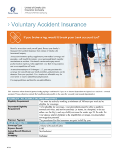Accidental Injury Insurance provides benefits to help cover unexpected costs associated with a non-work-related accident. If a covered injury occurs, this plan pays benefits regardless of any other insurance coverages. Mutual of Omaha will send a check for covered injuries; you decide the best way to spend it.